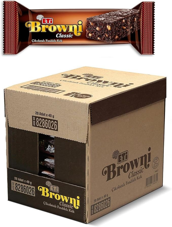 Bol çikolatalı yapısı ve içindeki kıtır fındık parçalarıyla Eti Browni Classic, klasikleşmiş enfes bir kek deneyimi sunar. 40 gramlık pratik ambalajı sayesinde okulda, iş yerinde veya kahve molasında kolaylıkla tüketilir. 20 adetlik koli seçeneğiyle toptan satış için hem ekonomik hem de raflarda çok satanlar arasında!